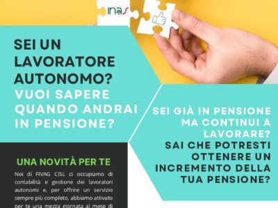 Una mezza giornata al mese con gli esperti del Patronato INAS CISL per verificare la propria posizione previdenziale, calcolare la pensione e valutare possibili incrementi.