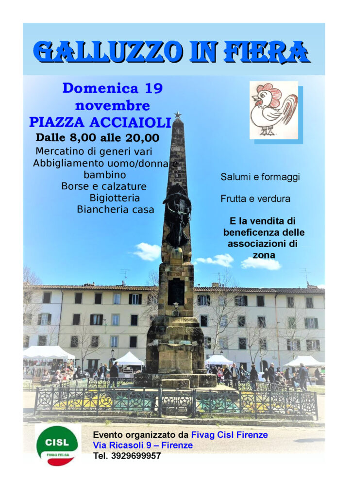 Mercatino di generi vari. Abbigliamento uomo/donna bambino, borse e calzature, bigiotteria, biancheria casa, salumi e formaggi, frutta e verdurda. Vendita di beneficenza delle associazioni di zona.
