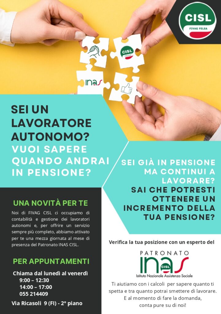 Per offrire un supporto ancora più completo, è stata infatti attivata una mezza giornata al mese di presenza del Patronato INAS CISL presso la sede di Via Ricasoli 9, FIRENZE, al 2° piano.